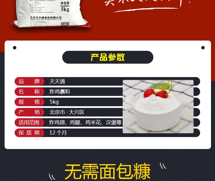 Tiantian fried chicken wrapped powder, crispy and delicious, loved by consumers.