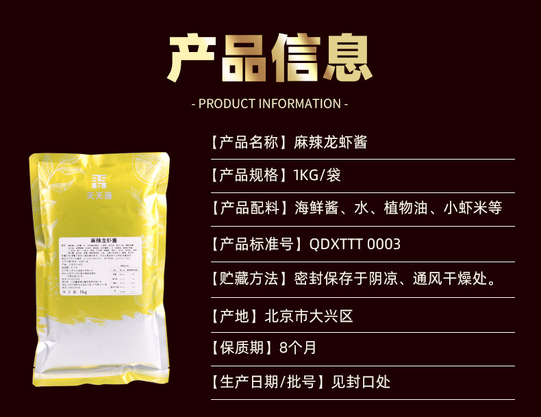 Tiantian spicy dragon shrimp sauce, rich in nutrition, taste refreshing, loved by consumers Product Details:···